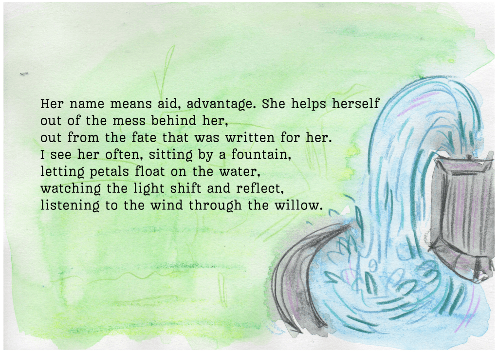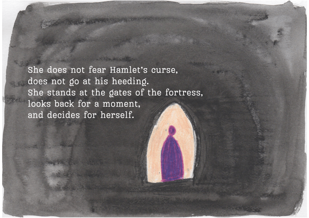 This is an illustrated poem I wrote after seeing my friend Issy play Ophelia at Ormond College. (She was a very good Ophelia!)